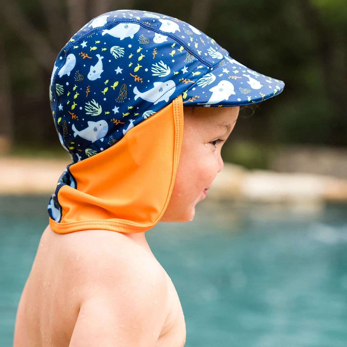 Čepice je navržena pro nošení ve vodě i venku. Je lehká, elastická, aby pěkně padla na hlavičku a nepadala. Zároveň s UV filtrem 40+. Kšilt chrání oči a zadní část je dostatečně dlouhá, aby ochránila i zadní část krku.