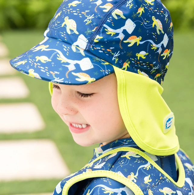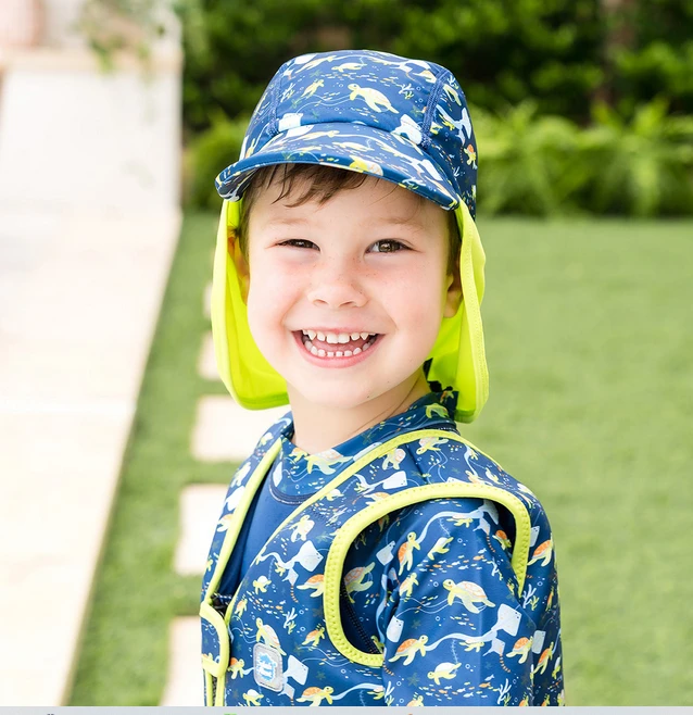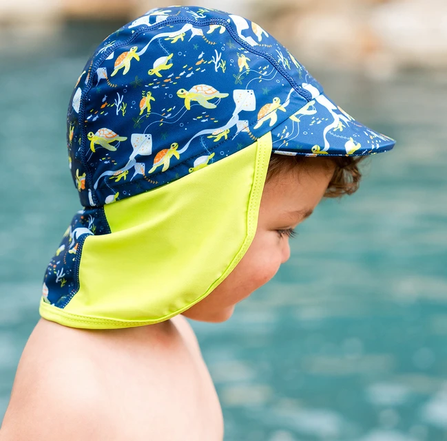 Čepice je navržena pro nošení ve vodě i venku. Je lehká, elastická, aby pěkně padla na hlavičku a nepadala. Zároveň s UV filtrem 40+. Kšilt chrání oči a zadní část je dostatečně dlouhá, aby ochránila i zadní část krku.