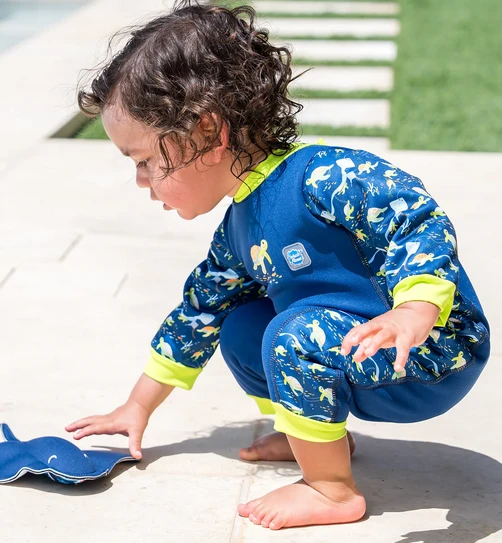 Tato jedinečná dětská neoprenová kombinéza byla navržena tak, aby dětem poskytovala maximální teplo během plavání. Měkký a pohodlný neoprenový obleček zakryje celé tělo a udrží tak děti v teple ve vodě či při chůzi z chladné šatny. Je ideální pro kojence s citlivou pokožkou, nepropustí žádný krém. Jedná se o teplou kombinézu s fleecovou podšívkou.