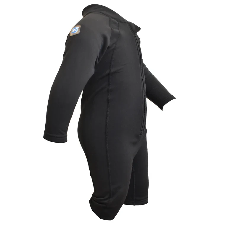 Oblek Thermaswim, navržený tak, aby těsně přiléhal a pohyboval se s vaším dítětem. Má česaný fleecový vnitřek, díky které se bude dítě během plavání cítit pohodlně a v teple. Dlouhé, lemované rukávy a nohavice poskytují maximální krytí. Díky zipu po celé délce a pružnému materiálu se overal dobře obléká a svléká.
